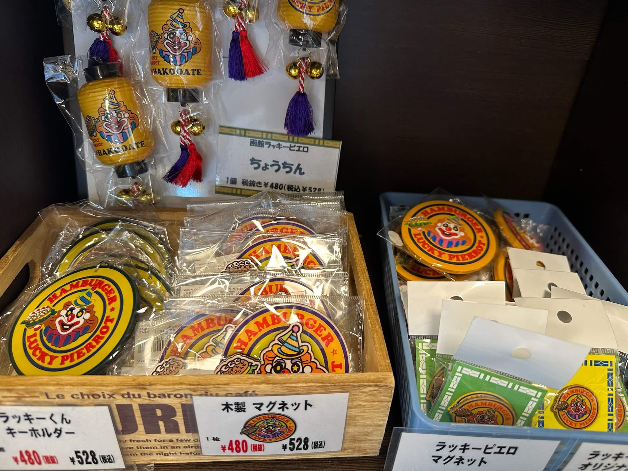 キーホルダー、ステッカー、カレーにお菓子全部揃う ラッキーピエロのお土産品